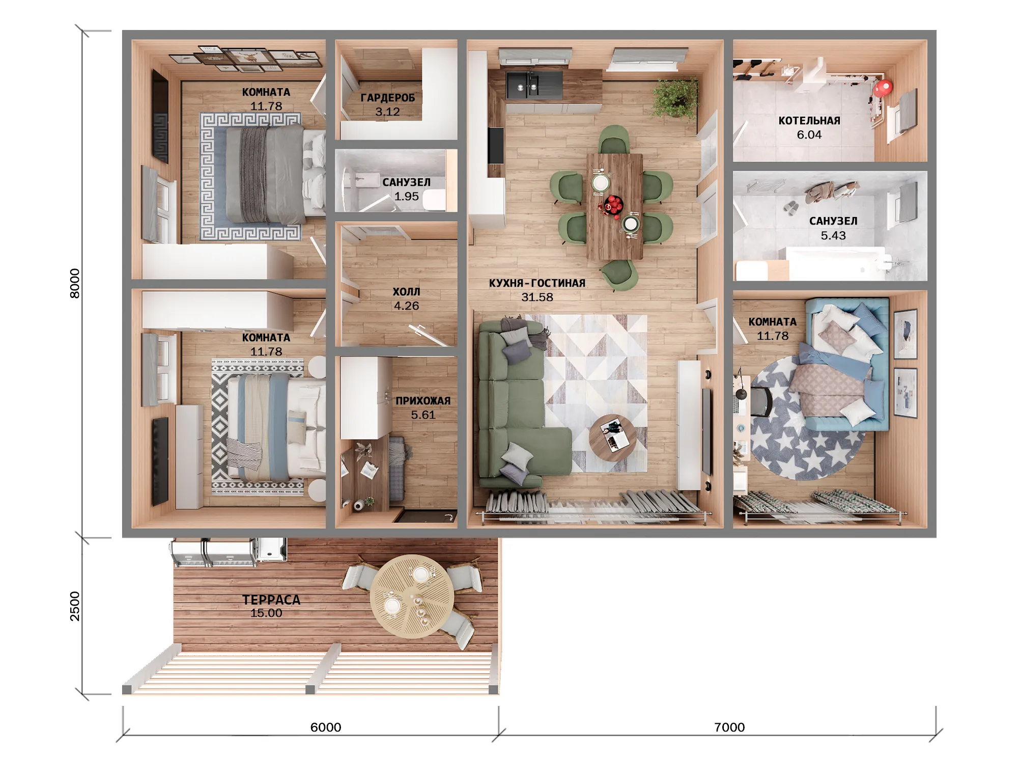 Комфорт 8х13 с боковой верандой